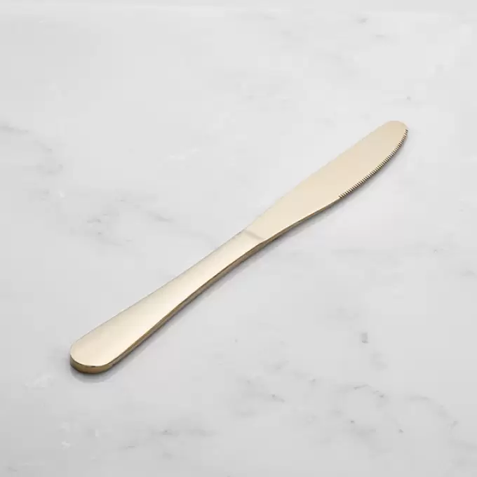 Our pale gold cutlery range is an alternative to traditional stainless steel cutlery. This table knife has a pale gold titanium coating which gives it a fantastic pale gold colour. These are made from 18/0 stainless steel and are safe for dishwasher use.